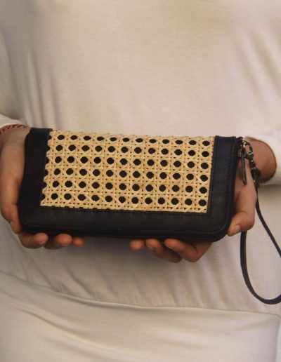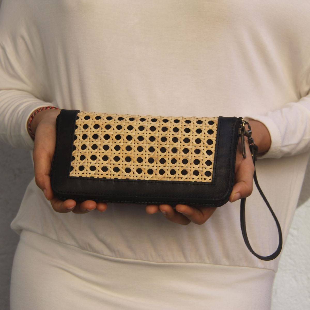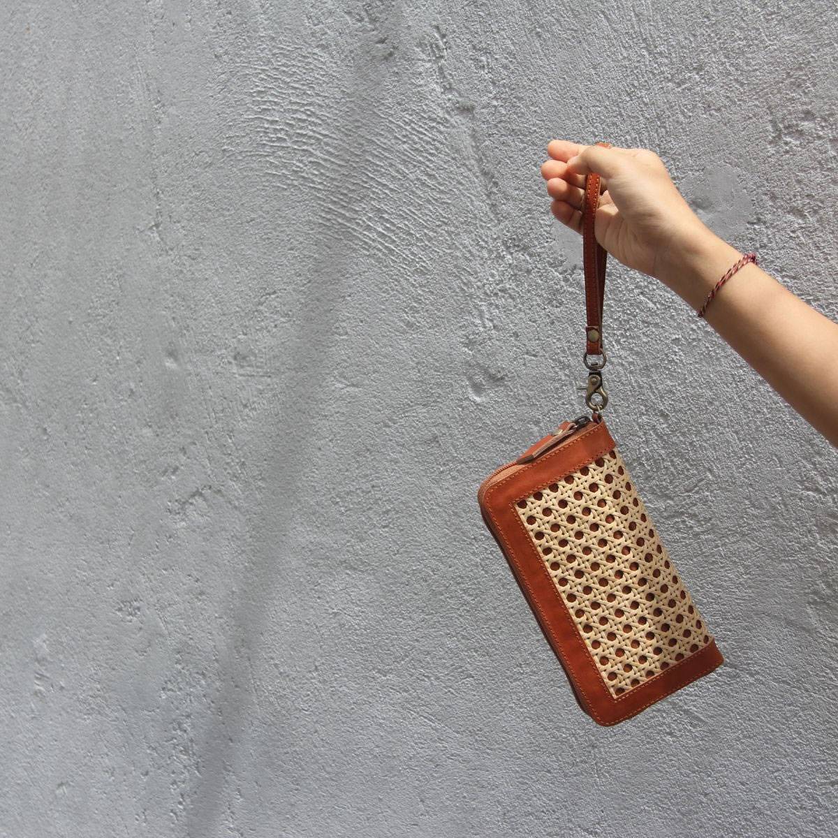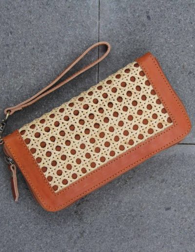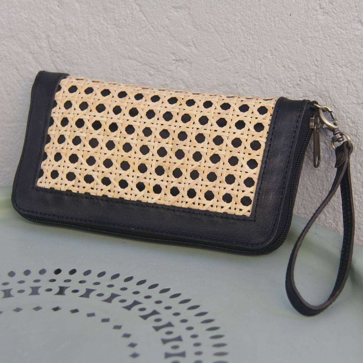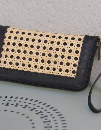 Aluna Leather & Rattan Wristlet Wallet