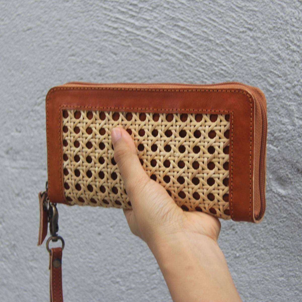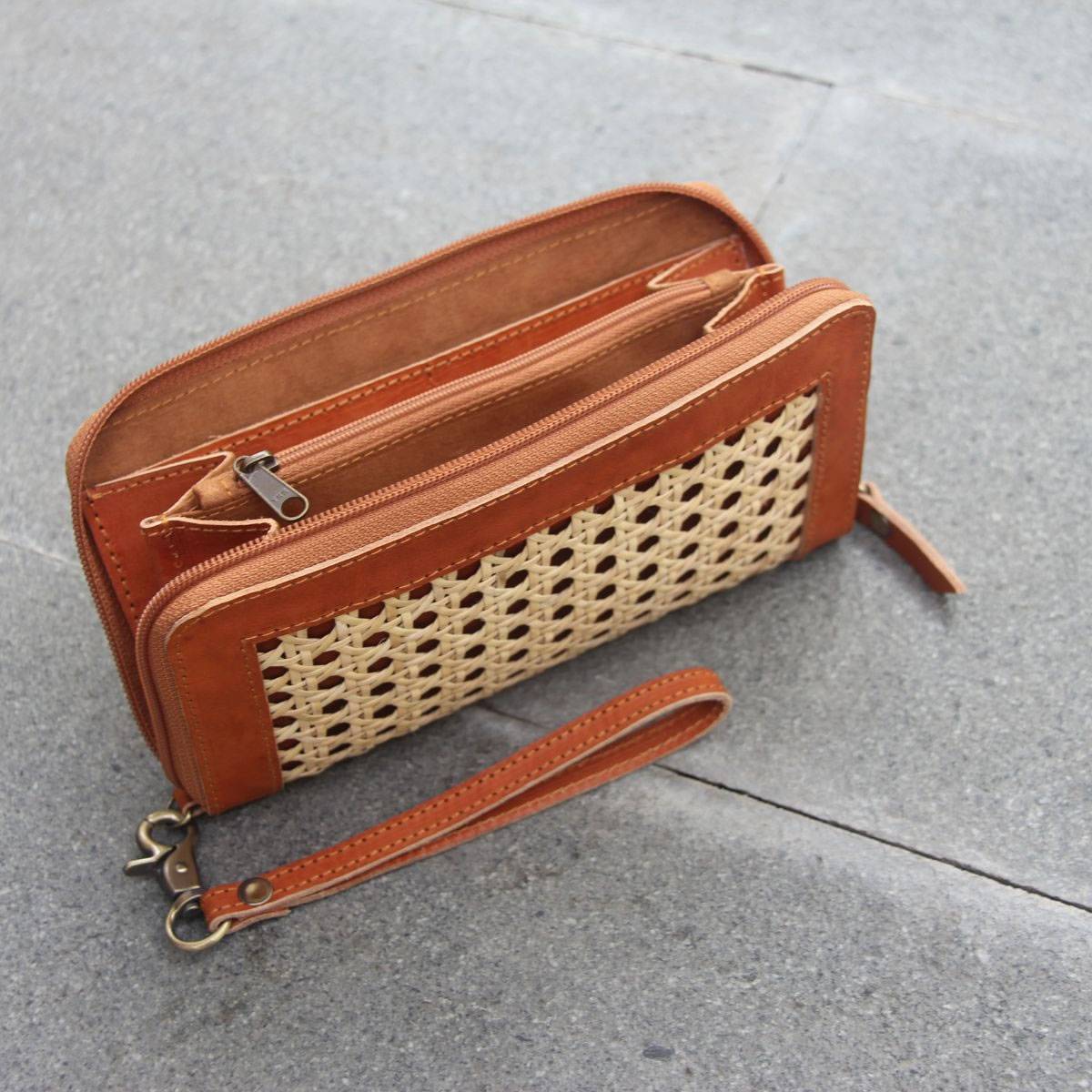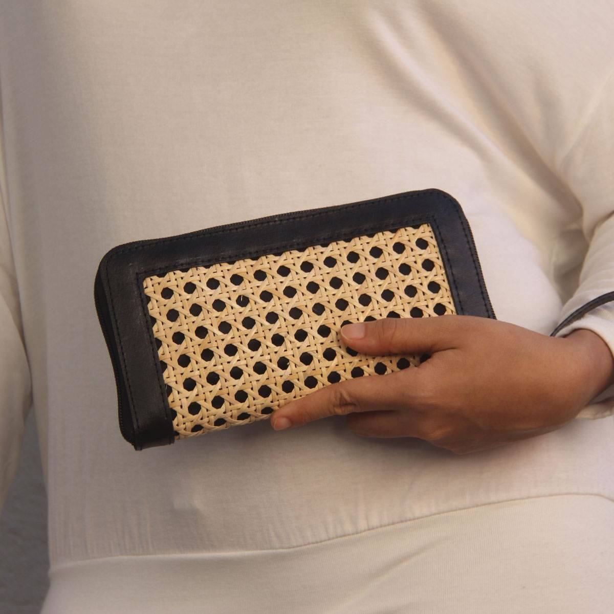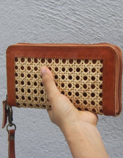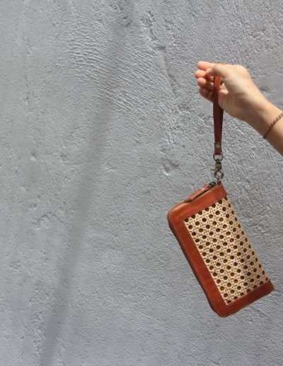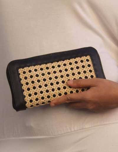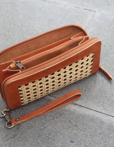 Aluna Leather & Rattan Wristlet Wallet