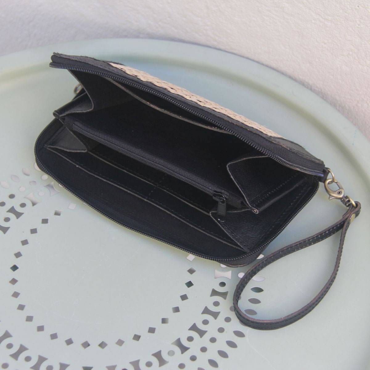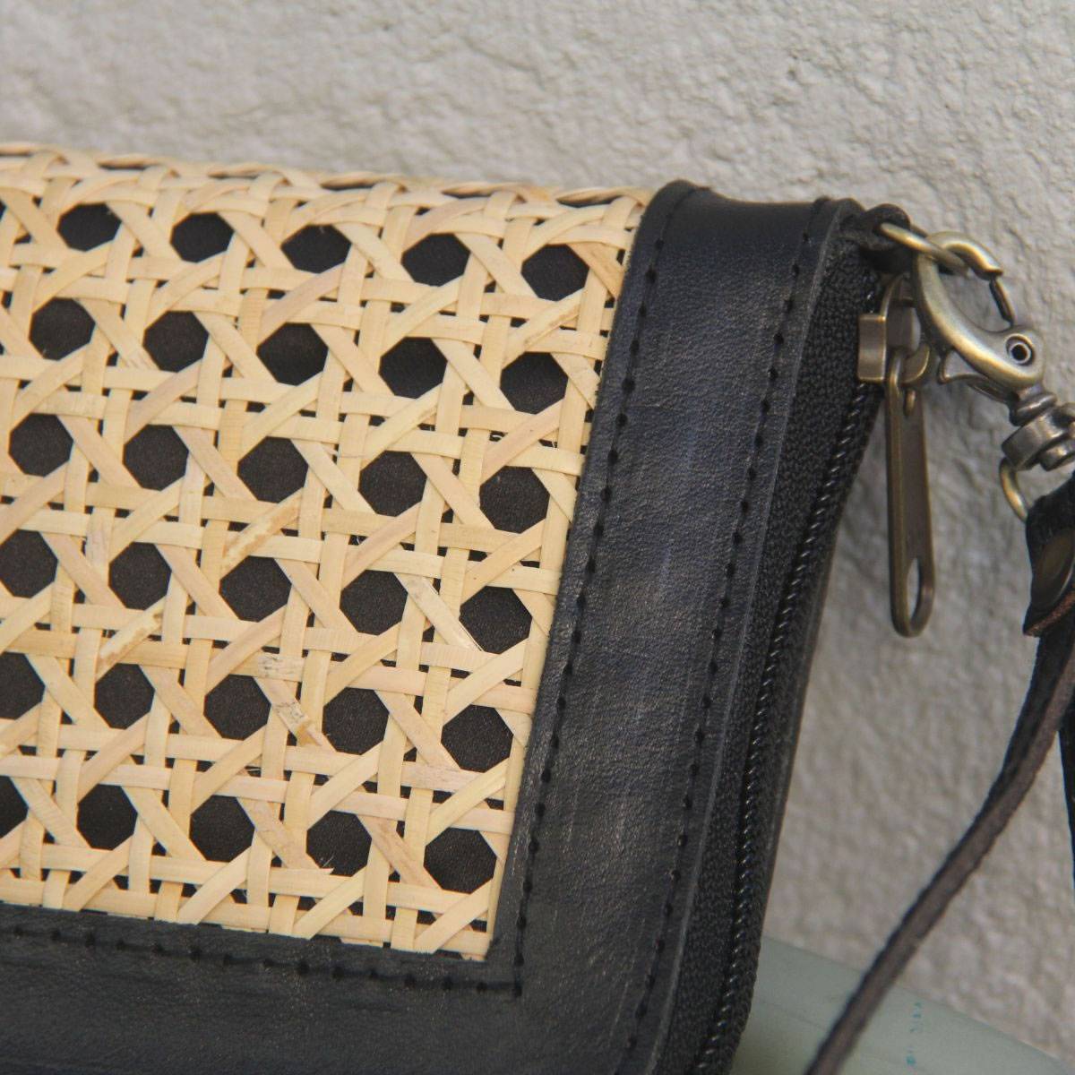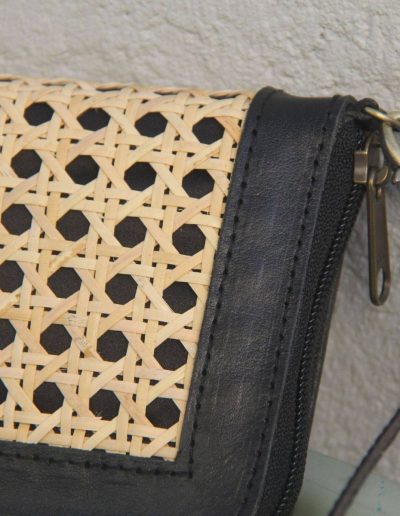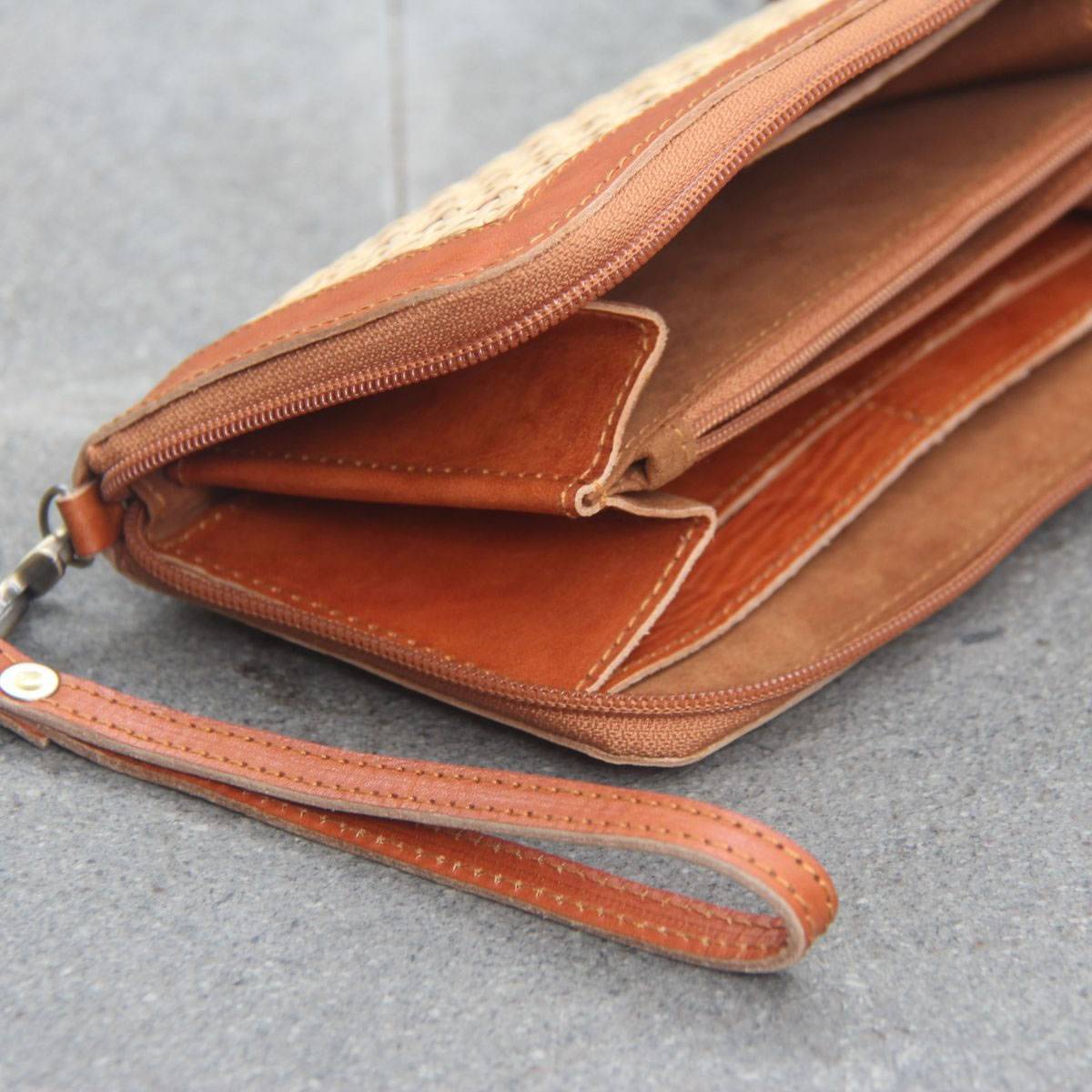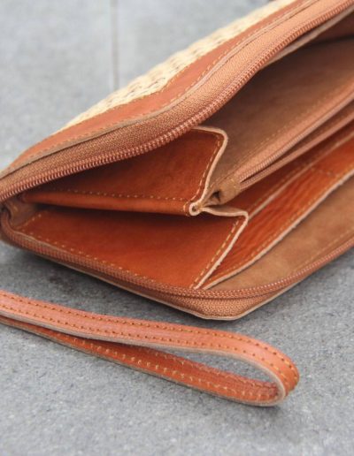 Aluna Leather & Rattan Wristlet Wallet