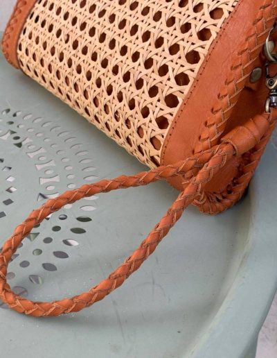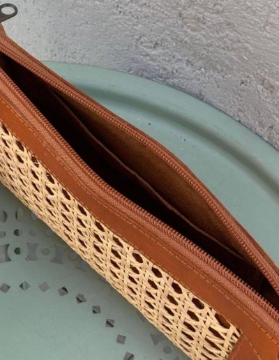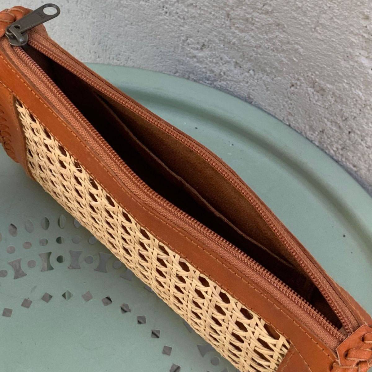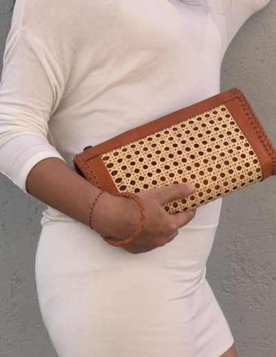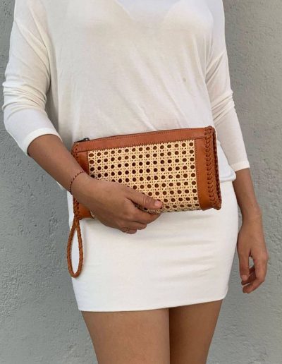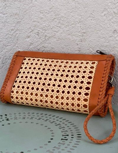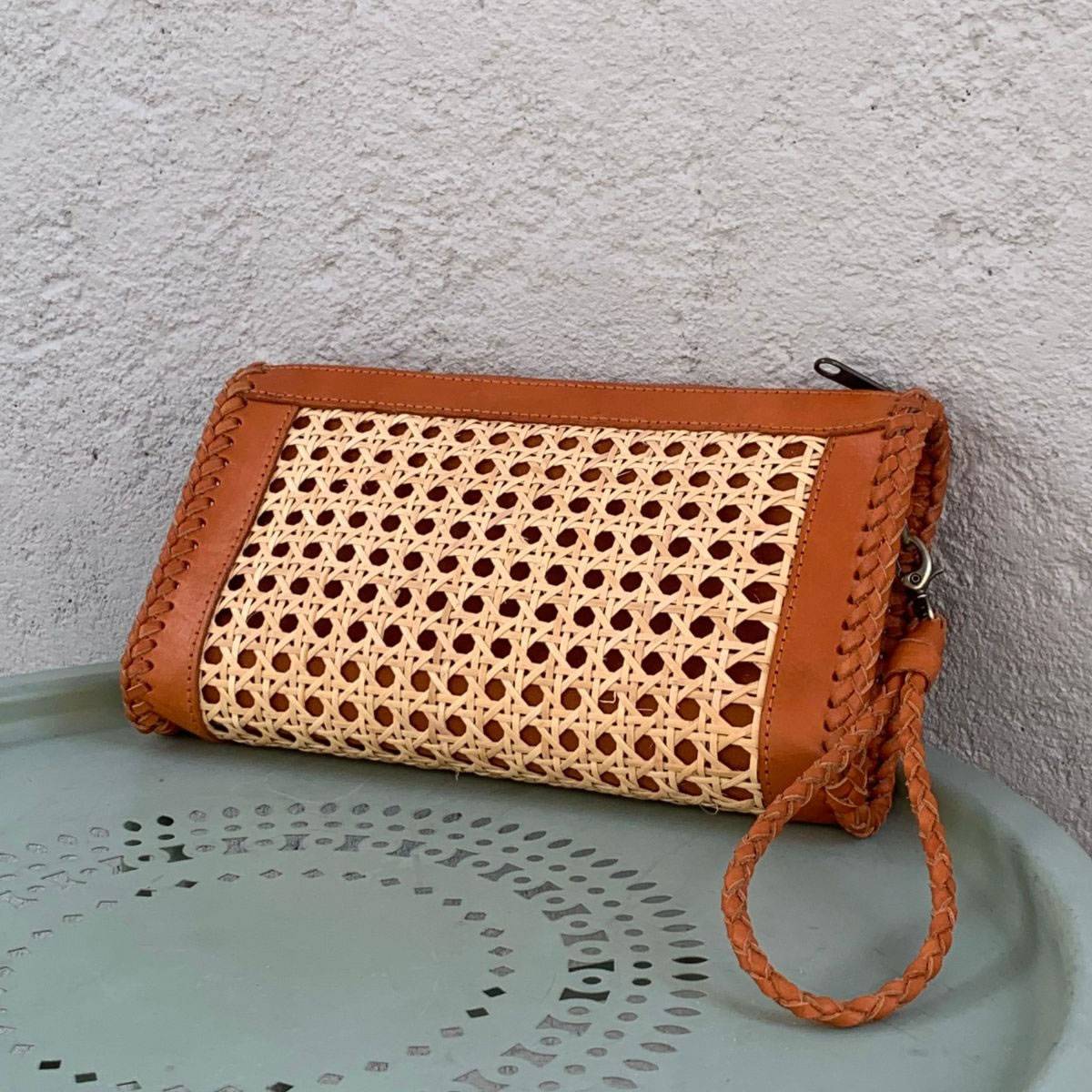 Bija Handwoven Leather and Rattan Wrislet Clutch