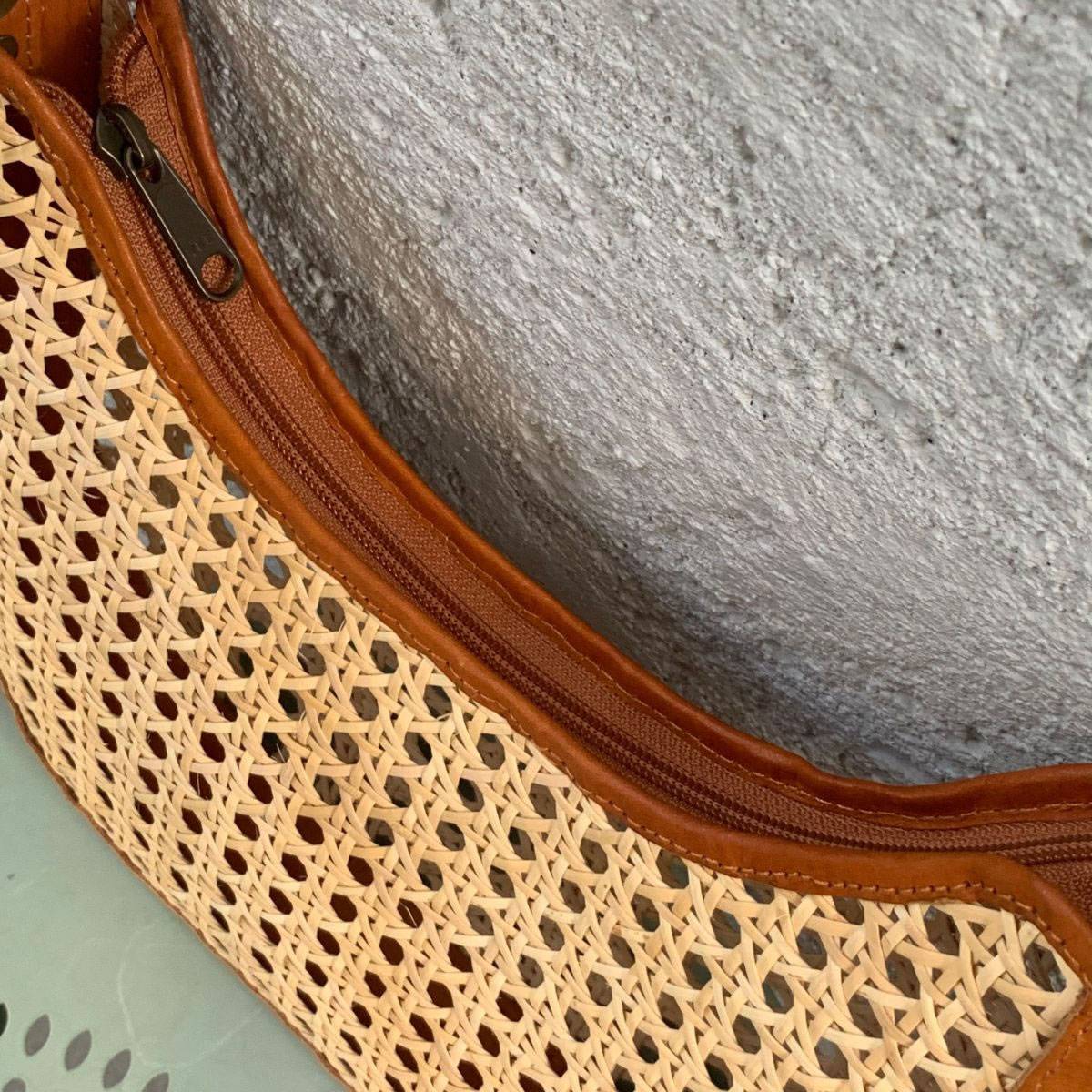 Jiva Leather & Rattan Dumpling Bag