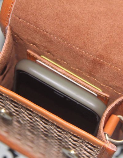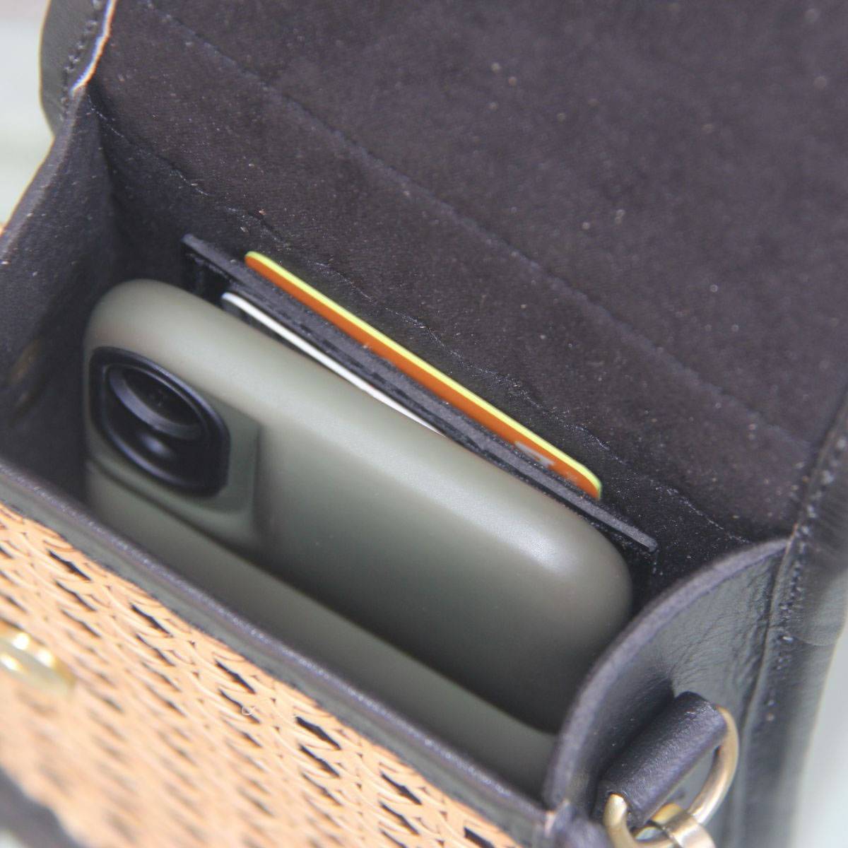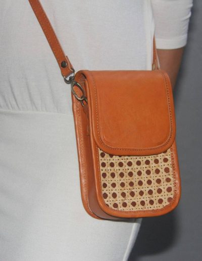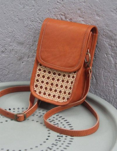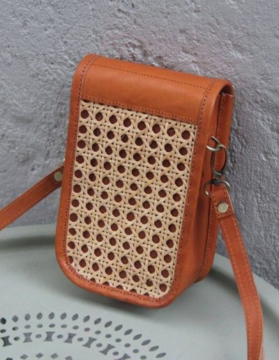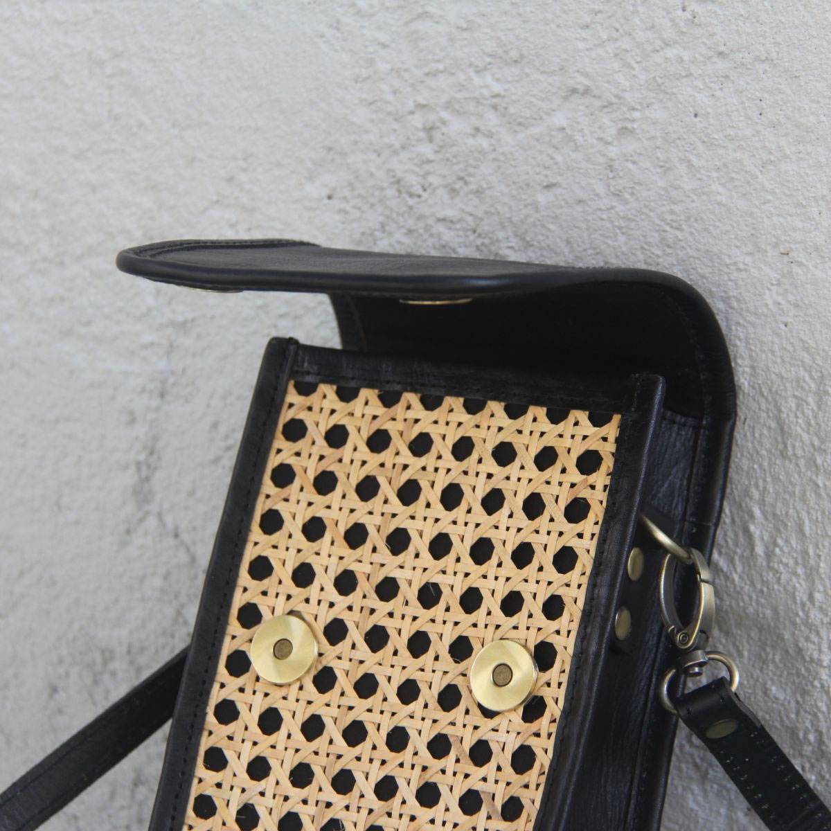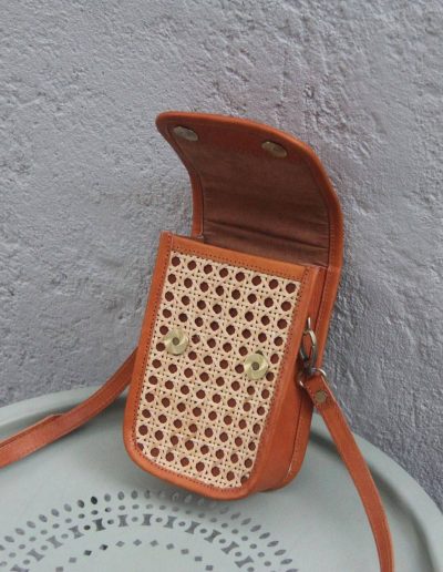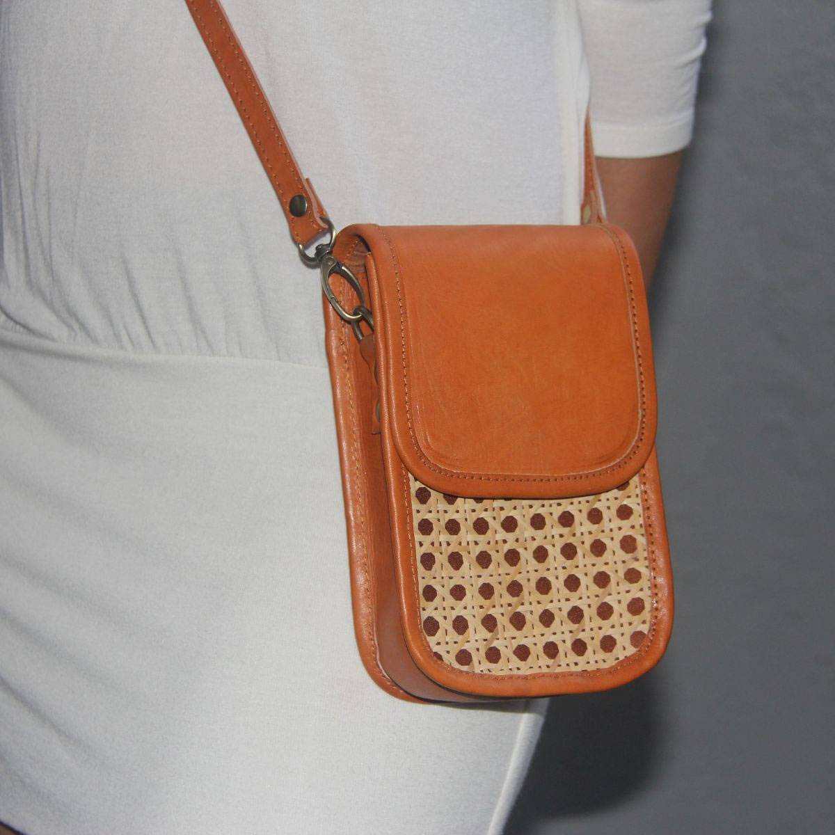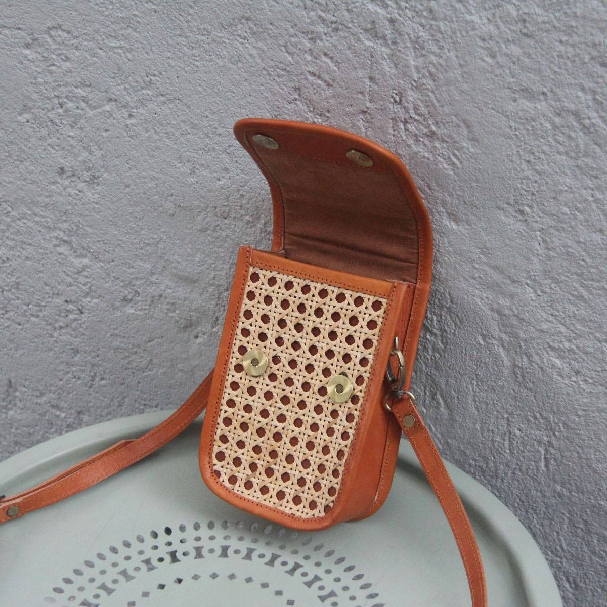 Enhance your accessory collection with our handmade rattan cane and real leather mini phone bag, designed to combine style and practicality. This chic mini bag is perfect for carrying your phone and small essentials, making it an ideal addition to your everyday outfits, quick outings, errands, or adding a touch of elegance to your look.