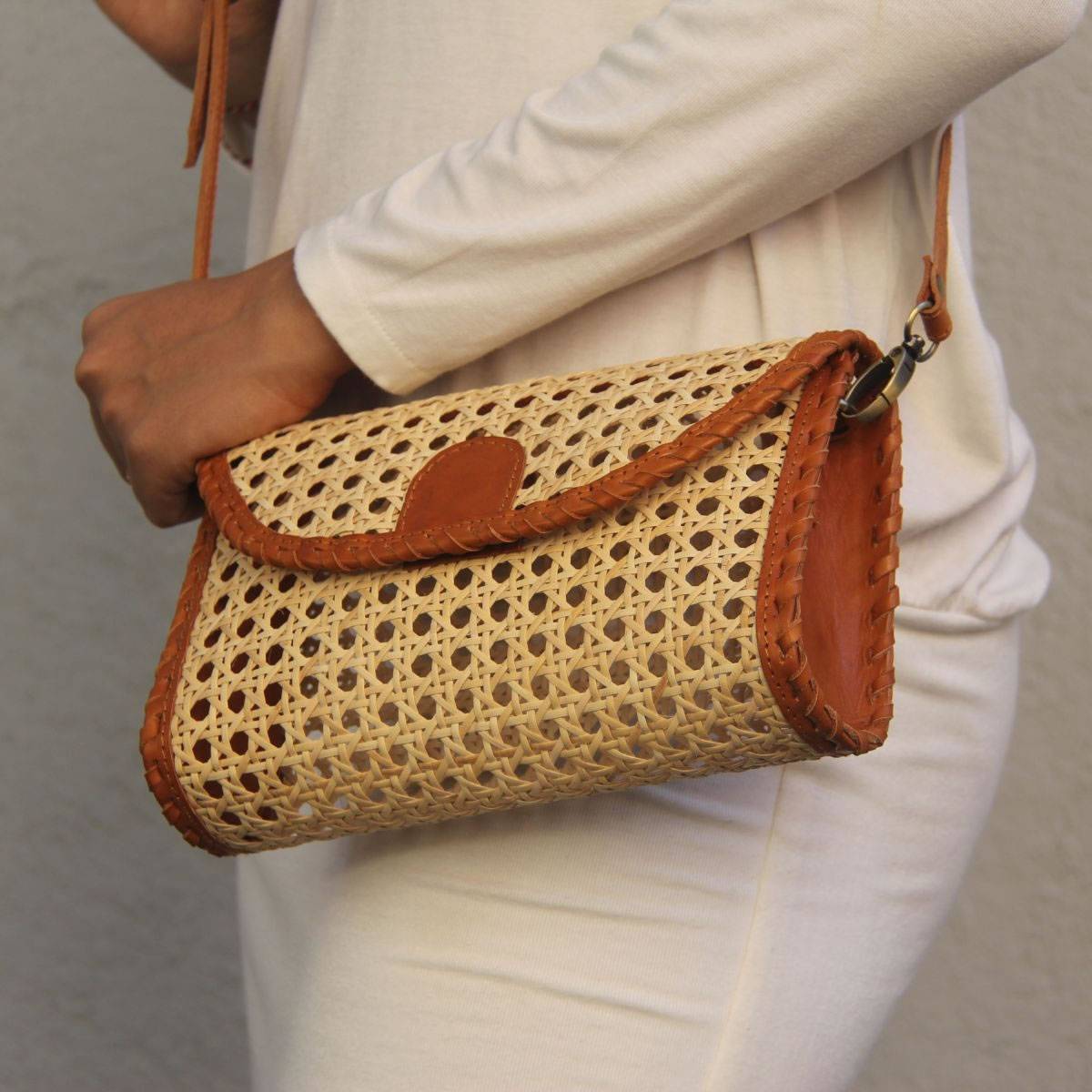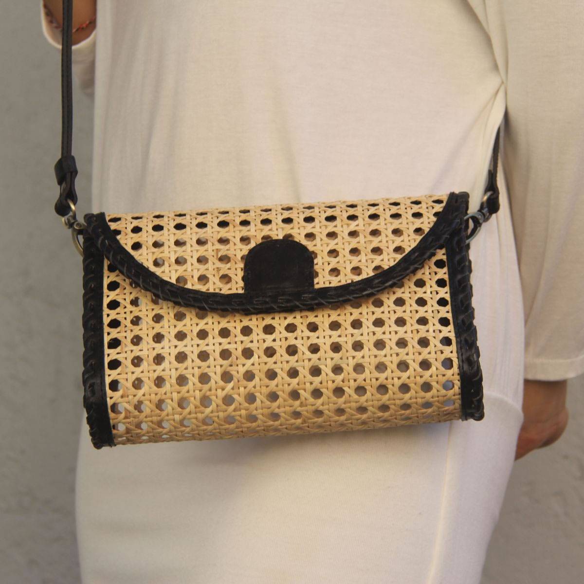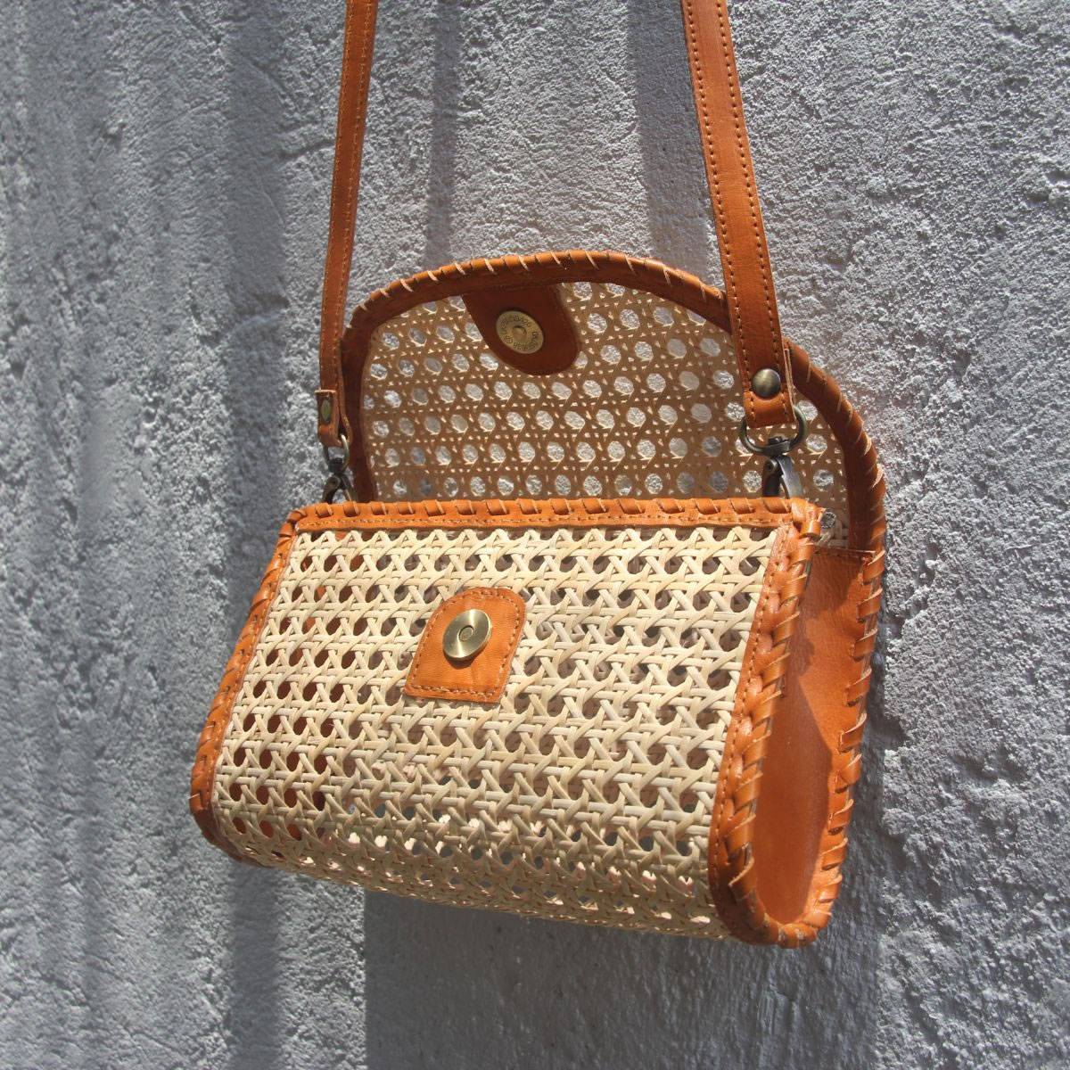Complete your stylish summer outfit with our exquisite chic sling bag, made with natural rattan cane webbing and genuine leather. This mini slingbag is versatile and easily matchable for many outfit styles to create a unique and chic look. From casual outings to formal events, our versatile collection offers a bag for every occasion. With their earthy tones and timeless design, they effortlessly complement any outfit, adding a touch of sophistication to your ensemble.